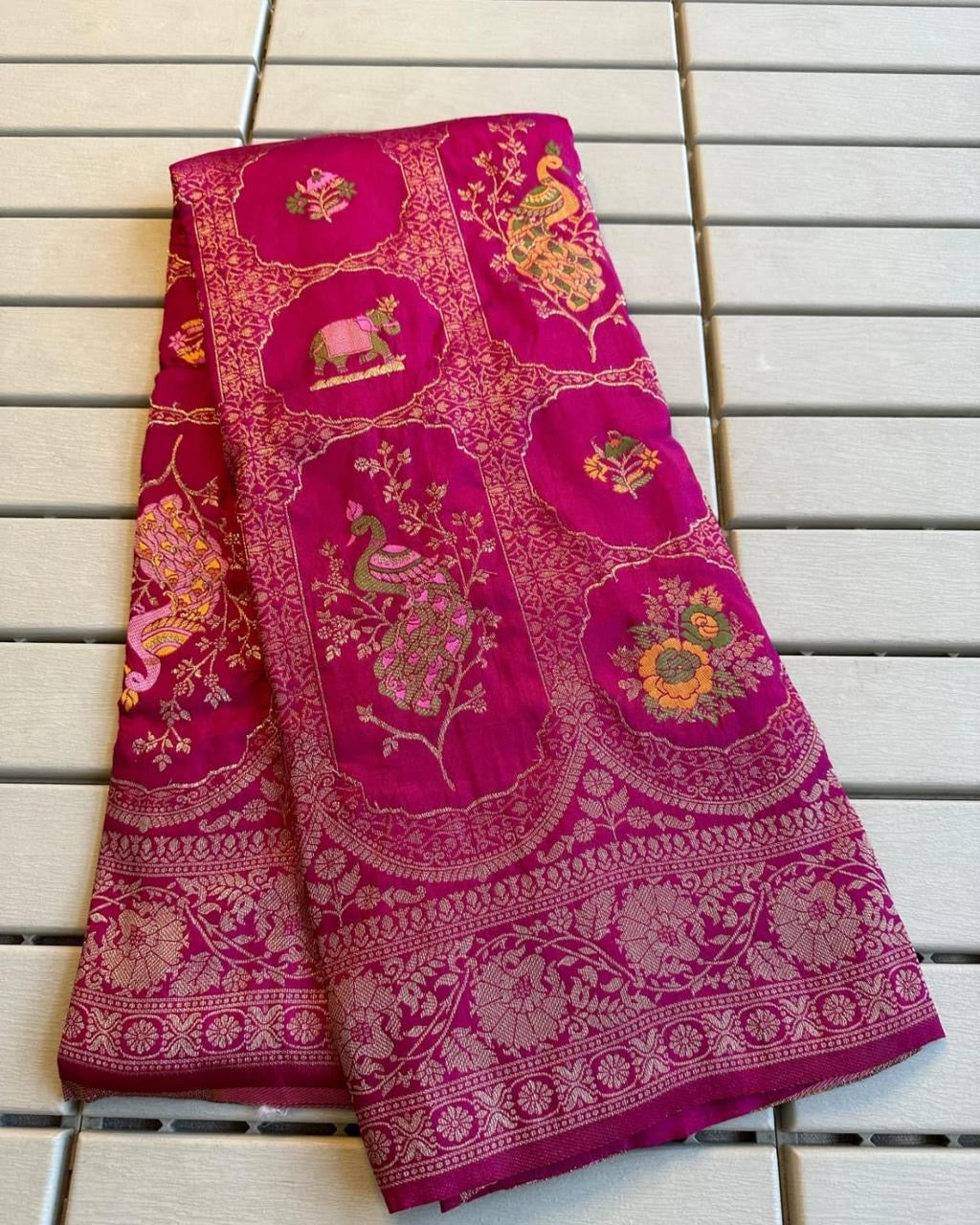 Introducing our Banarasi Crepe Saree, made from Banarasi Khadi crepe, renowned for its luxurious drape and elegant designs. Ideal for special occasions and gatherings, this saree combines traditional craftsmanship with modern sophistication. Experience the beauty and comfort of Banarasi crepe - a must-have addition to any wardrobe.