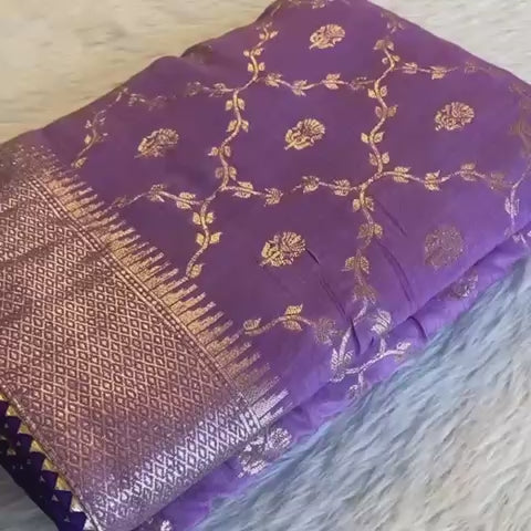 Introducing our Banarasi Crepe Saree, made from Banarasi Khadi crepe, renowned for its luxurious drape and elegant designs. Ideal for special occasions and gatherings, this saree combines traditional craftsmanship with modern sophistication. Experience the beauty and comfort of Banarasi crepe - a must-have addition to any wardrobe.