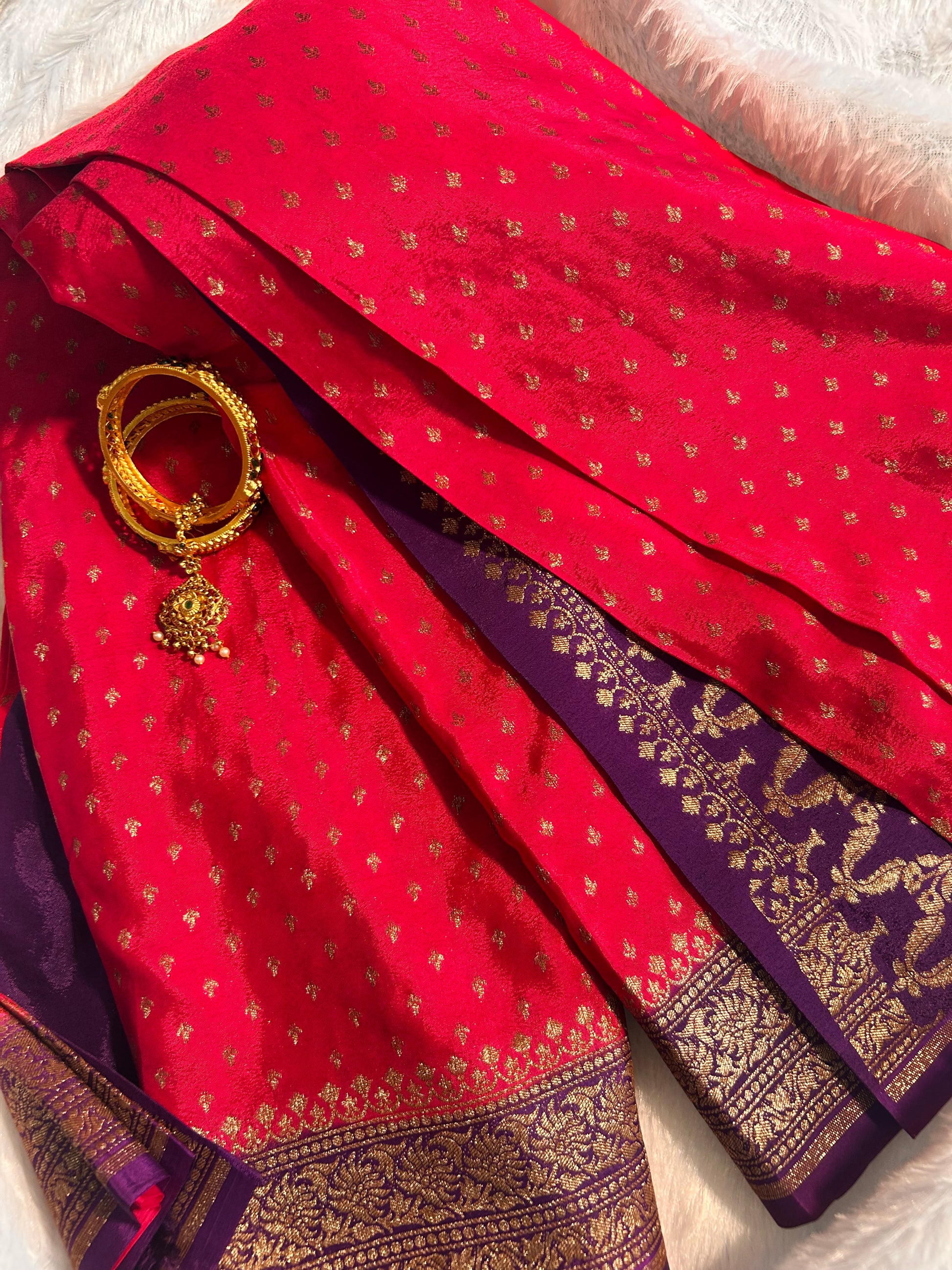Introducing our Banarasi Crepe Saree, made from Banarasi Khadi crepe, renowned for its luxurious drape and elegant designs. Ideal for special occasions and gatherings, this saree combines traditional craftsmanship with modern sophistication. Experience the beauty and comfort of Banarasi crepe - a must-have addition to any wardrobe.