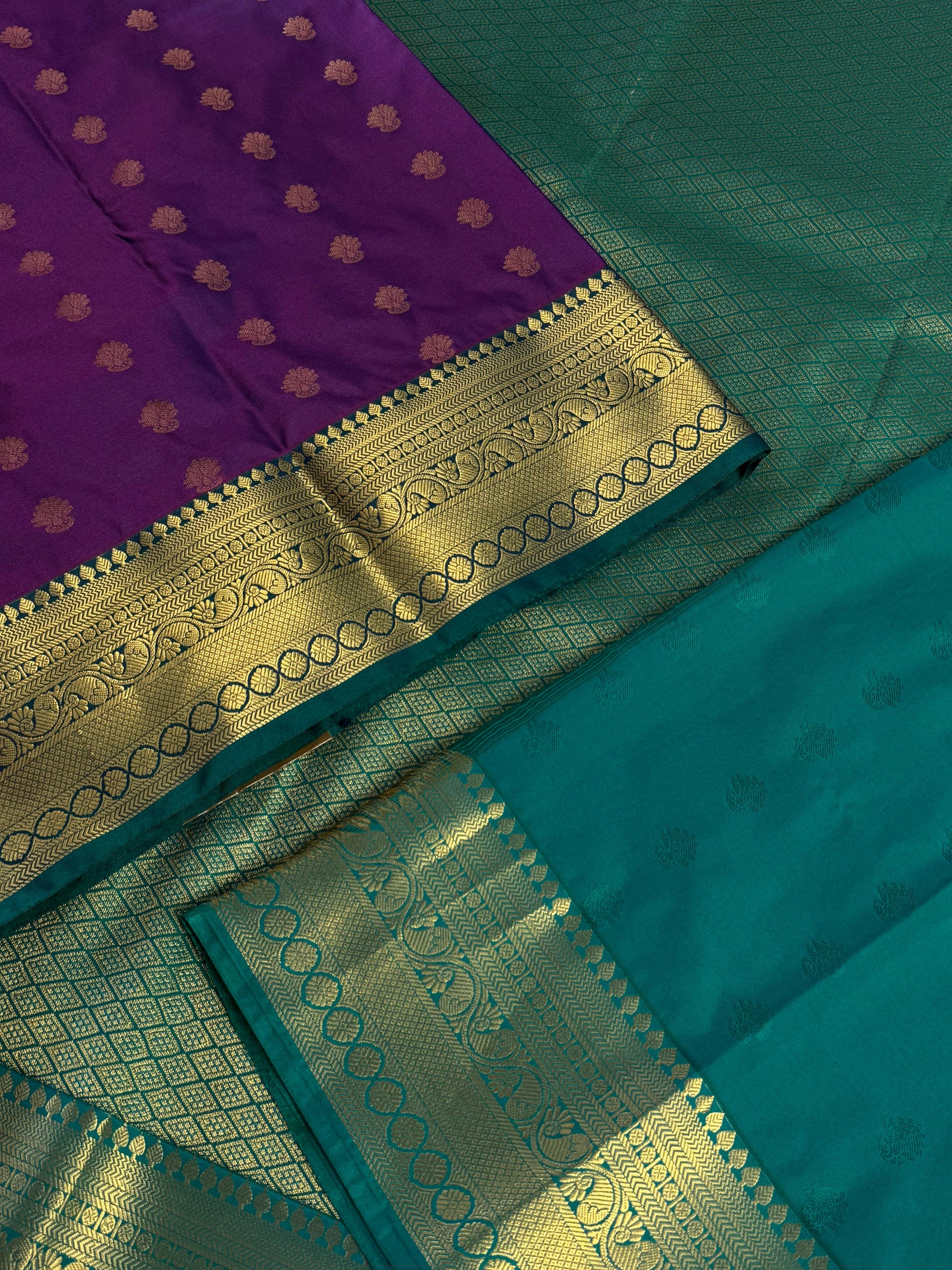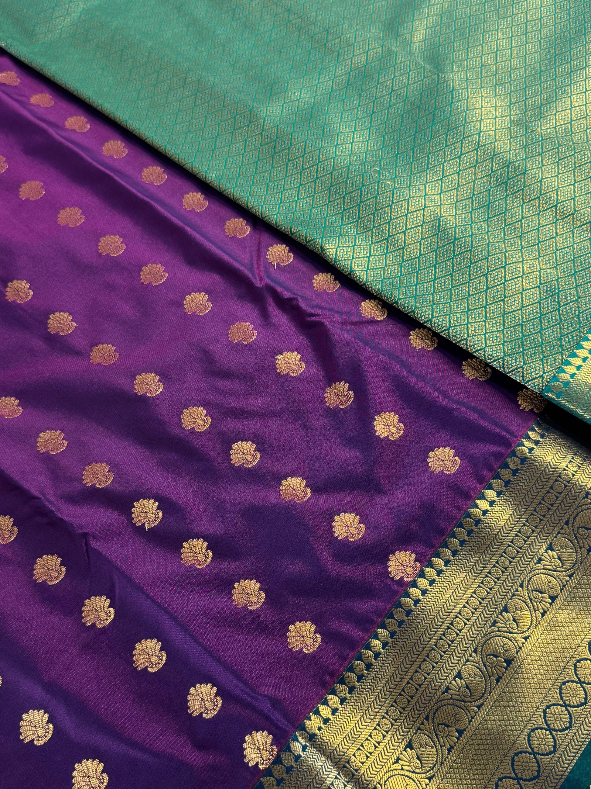 Upgrade your wardrobe with the luxurious Kanchipuram semi silk saree. Made from high-quality semi silk, this saree boasts a special design that will make you stand out at any occasion. With its traditional yet modern charm, this saree is a must-have for any fashion-forward individual.