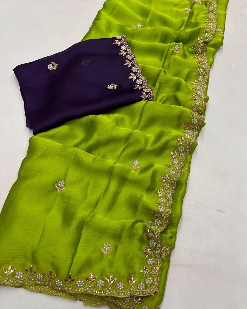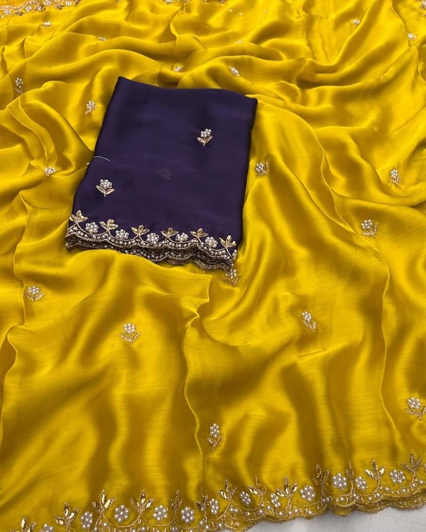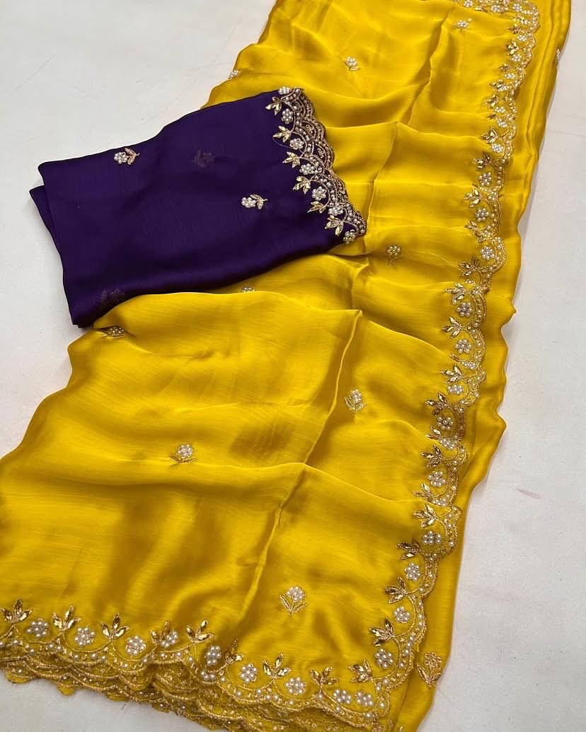 Satin pearl border party wear saree