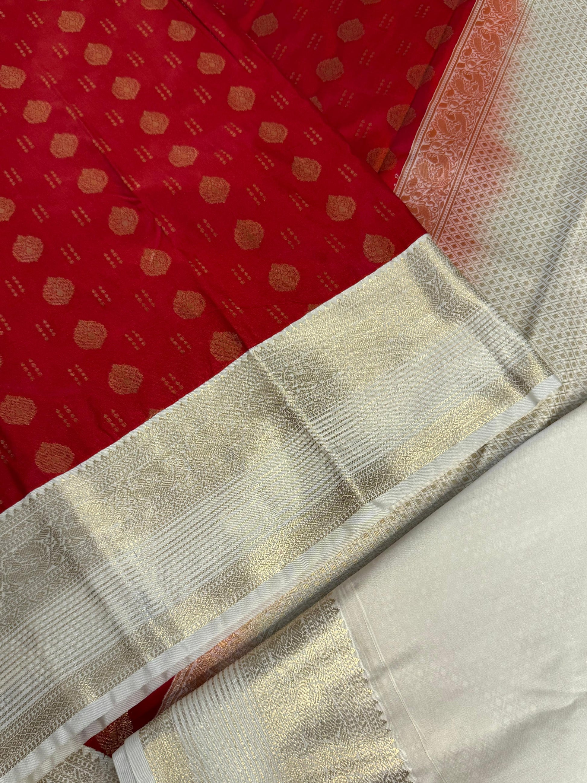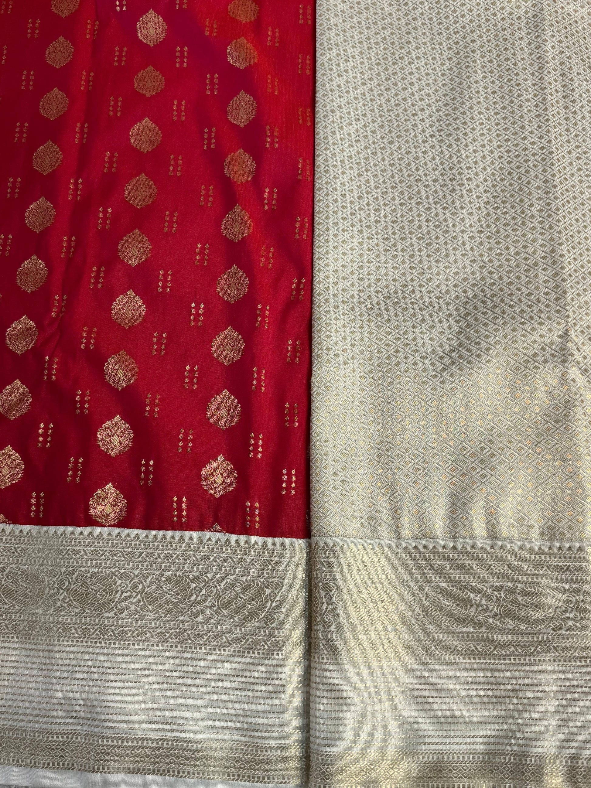 Upgrade your wardrobe with the luxurious Kanchipuram semi silk saree. Made from high-quality semi silk, this saree boasts a special design that will make you stand out at any occasion. With its traditional yet modern charm, this saree is a must-have for any fashion-forward individual.