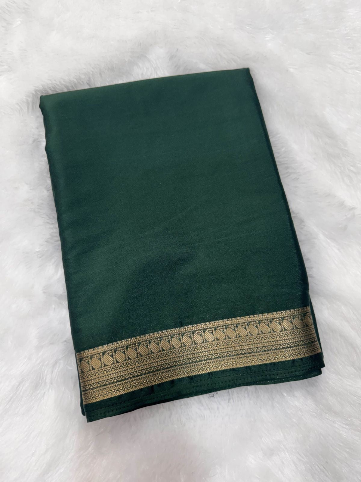 Introducing our Mysore semi crepe silk saree! This saree boasts a luxurious semi-silk material and a beautiful big border design. Perfect for any special occasion, this saree offers a touch of elegance and sophistication. Upgrade your wardrobe with this limited edition piece.