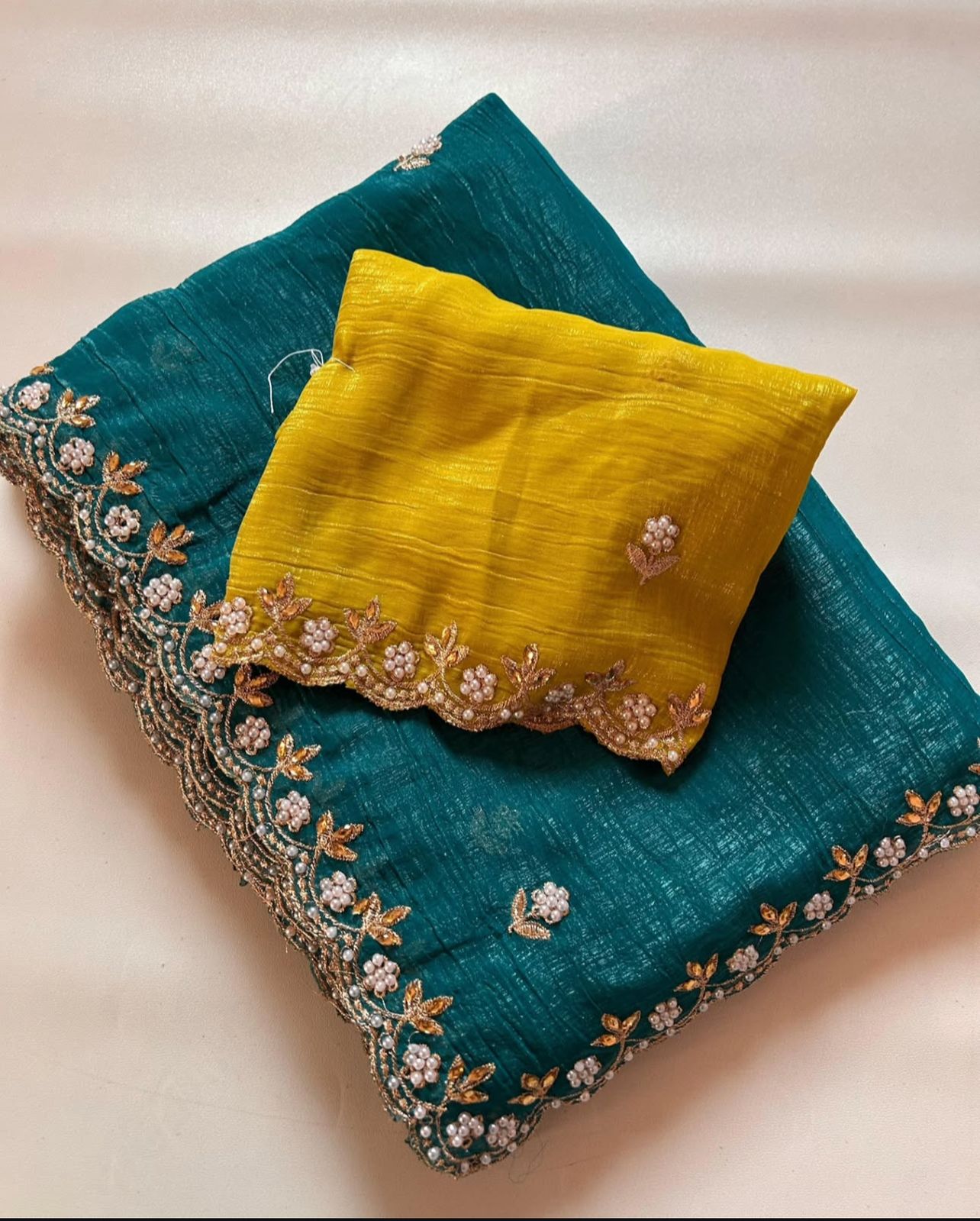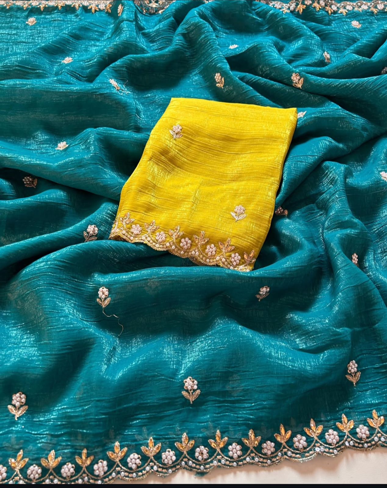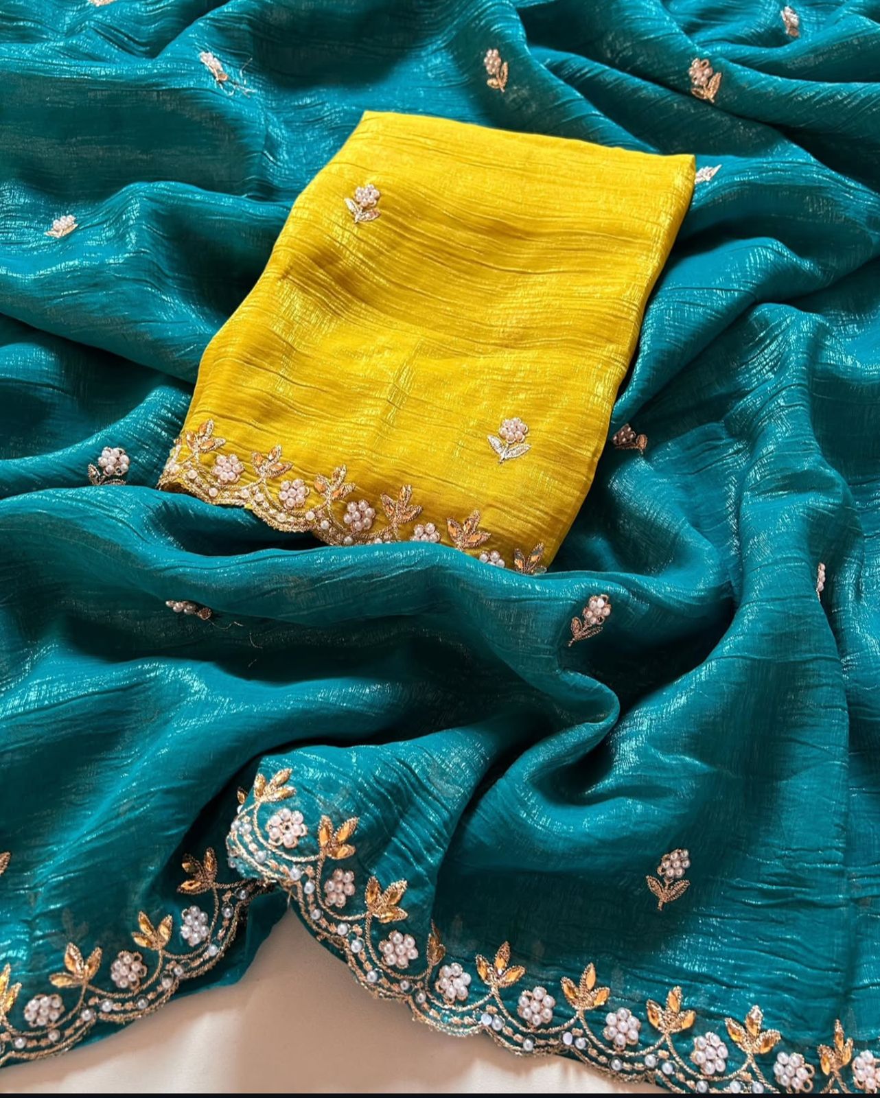 Stay comfortable and stylish with our light weight party wear sarees. Made from lightweight materials, these sarees are perfect for any festive occasion. Look your best while staying comfortable all day long.